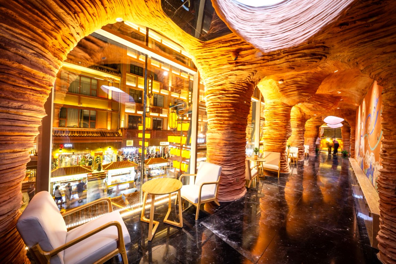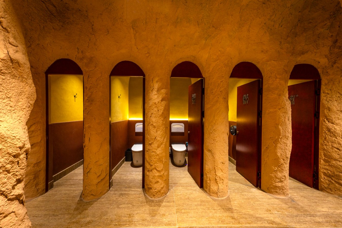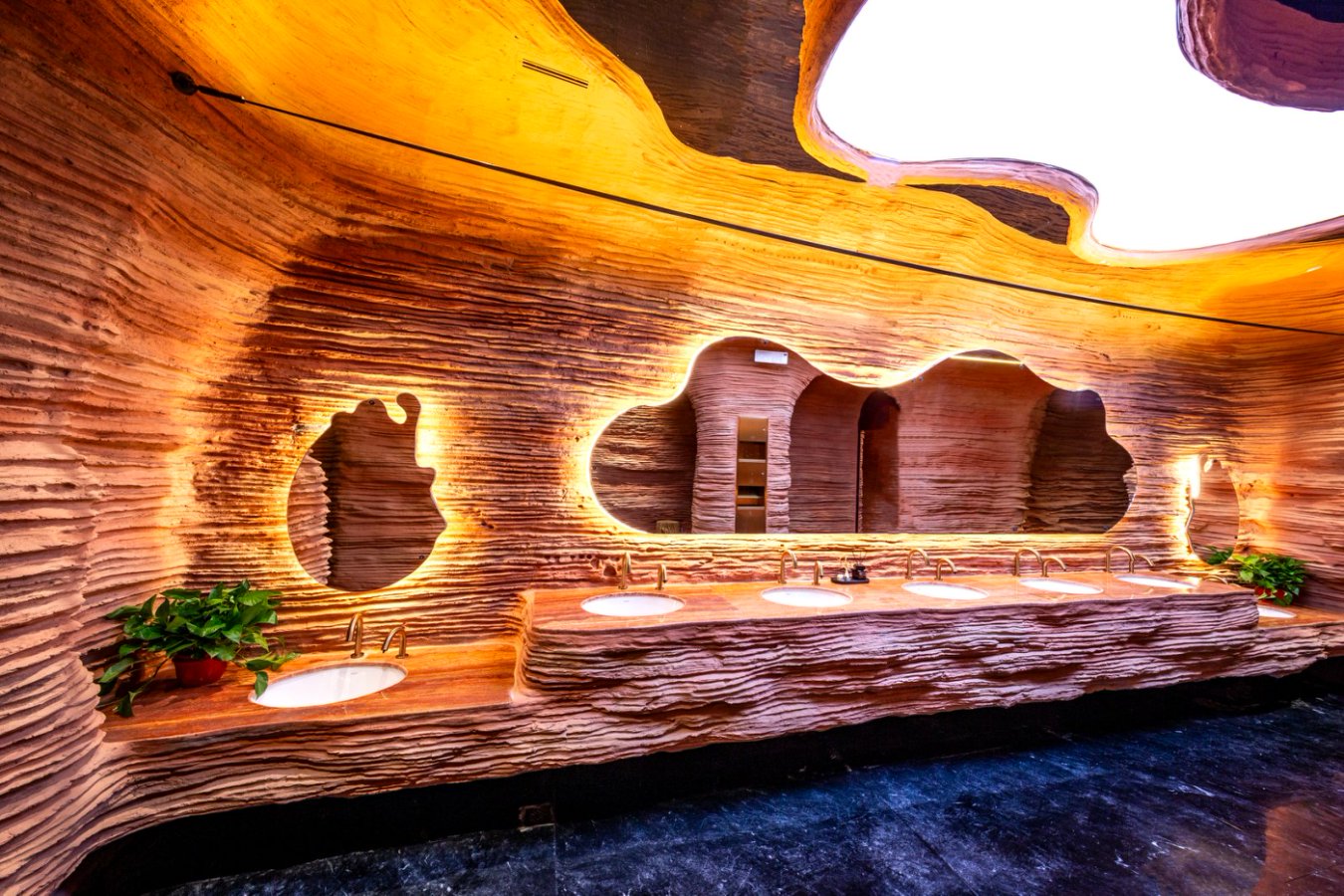 據(jù)了解,該項(xiàng)目對敦煌夜市“八景樓”進(jìn)行功能再造,融合敦煌文化基因:一層以“莫高至善”為主題,二層則呈現(xiàn)“雅丹秘境”,營造雄渾奇幻的空間意境。步入其中,便能感受到敦煌文化與九牧衛(wèi)浴產(chǎn)品的完美交融,一位來自北京的游客表示:“這和我印象中的公廁完全不一樣,升級后的超白玻幕墻與毗鄰的沙州樓形成震撼的 ‘古今對話’,夜幕降臨時,燈光與幕墻交相輝映,宛如一座小型藝術(shù)館。”