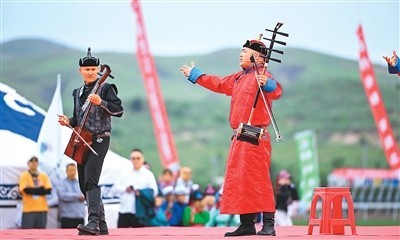 演員在內(nèi)蒙古自治區(qū)第十一屆少數(shù)民族傳統(tǒng)體育運(yùn)動(dòng)會(huì)(巴林右旗分賽場)開賽儀式上表演。