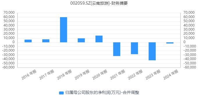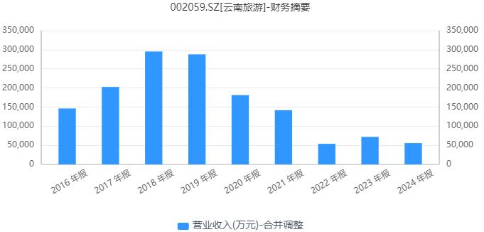 雖然擁有稀缺的旅游資源,但是在業(yè)績(jī)上,云南旅游卻沒有將優(yōu)勢(shì)轉(zhuǎn)化為利潤(rùn)。營(yíng)收方面,公司在2018年達(dá)到高點(diǎn)后就快速下滑,這幾年?duì)I收規(guī)模縮水較嚴(yán)重,2024年公司的營(yíng)收5.57億元,僅相當(dāng)于2018年?duì)I收的18%左右。
