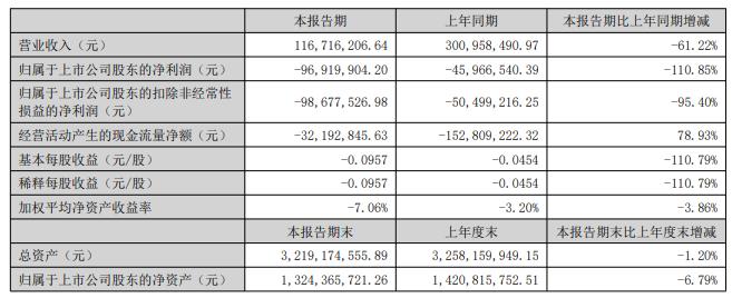 上半年?duì)I收降六成虧損近億元