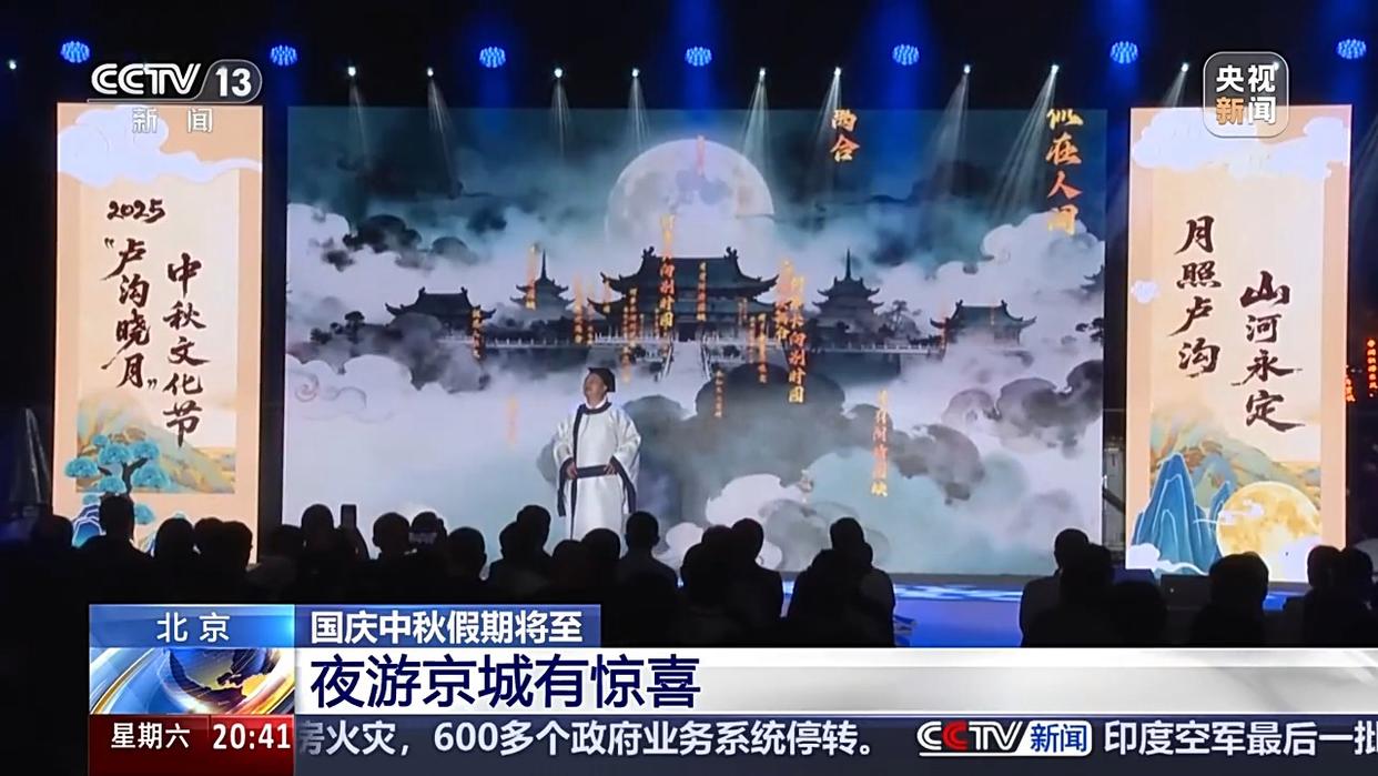 夜幕降臨,宛平城燈火璀璨,一場(chǎng)中秋文化演出在盧溝橋廣場(chǎng)熱鬧上演。創(chuàng)意歌舞、情景劇、經(jīng)典詩(shī)詞誦讀等節(jié)目點(diǎn)燃了觀眾們的熱情。除了看演出,還能逛集市。600多米的街道上,各式攤位整齊排布,迎接各地游客。