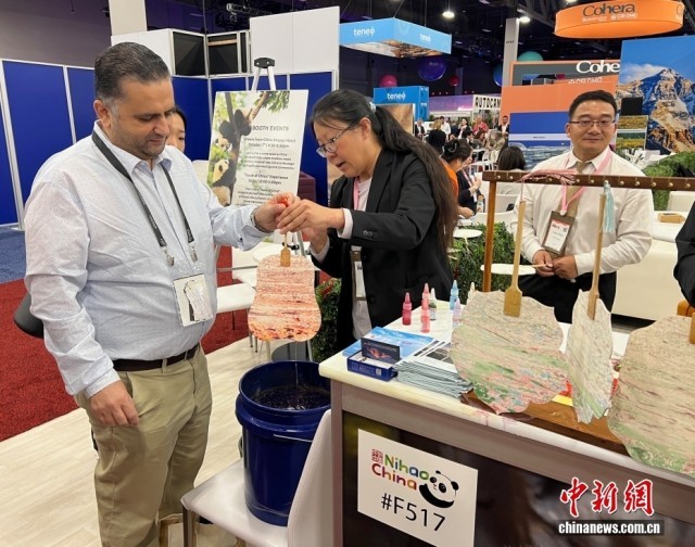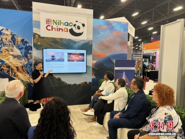 當?shù)貢r間10月8日,2025年美國會議獎勵旅游展(IMEX America)繼續(xù)在拉斯維加斯舉行。這是全球會議及獎勵旅游領域最具影響力的展會之一。中國展臺舉辦“中華一刻”——中國非物質文化遺產(chǎn)體驗等豐富多彩的活動,吸引眾多與會者感受中華文化魅力。圖為國際會獎旅游買家等參加中國展臺的文旅推介會。