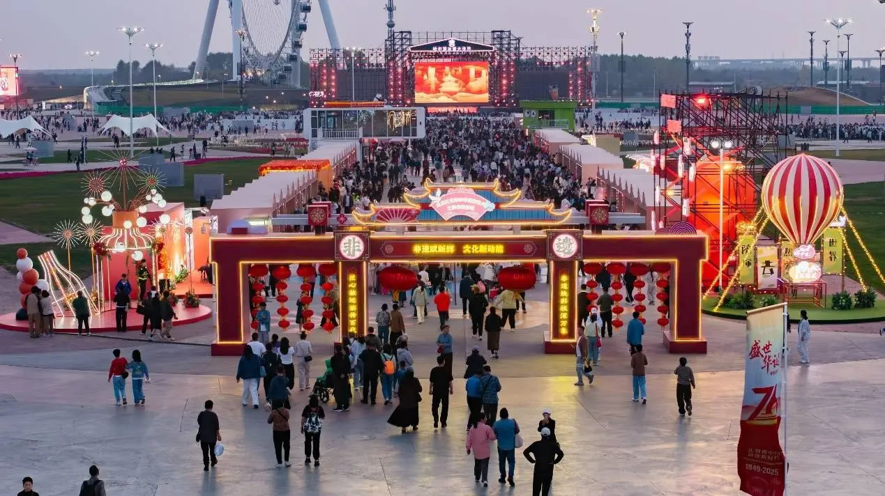 雙節(jié)期間,哈爾濱冰雪大世界打造全天候多場(chǎng)景活動(dòng)矩陣。千人共繪大美中國插畫向新中國76周年華誕獻(xiàn)禮,讓親子互動(dòng)在共祝祖國的愛國情中升華;夢(mèng)幻冰雪館以“最大的室內(nèi)冰雪主題樂園”,讓游客驚呼四季皆可賞冰樂雪的美妙;非遺購物周集結(jié)14個(gè)省2個(gè)直轄市的非遺技藝和地道美食,讓人大開眼界;百人國慶主題花車巡游,56個(gè)民族親如一家,傳遞著團(tuán)圓的喜慶與歡樂;大型奇幻秀《王的戰(zhàn)車》,以震撼視效展示千年前“英雄崛起”的王者風(fēng)采;多場(chǎng)體育賽事和公益演出成功舉辦,將運(yùn)動(dòng)激情、人文溫情與歡慶雙節(jié)的熱烈氛圍交融;煙花秀、無人機(jī)表演、非遺打鐵花,三重視覺驚艷場(chǎng)景輪番上演,讓游客直呼“不虛此行”。